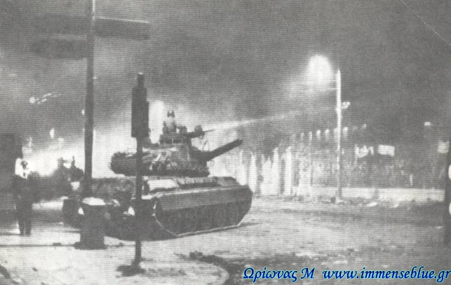- Το τανκ γκρεμίζει την πύλη του Πολυτεχνείου.